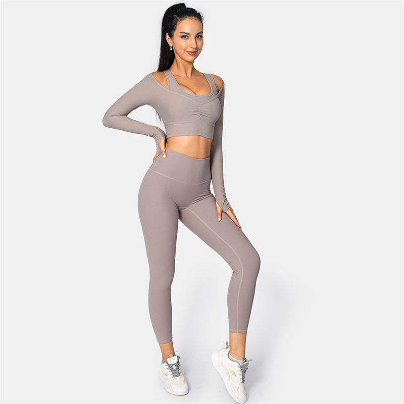 Womens Wholesale Multi Color Options Long Sleeve Nylon Spandex Stretchable Comfortable Apparel Yoga Set